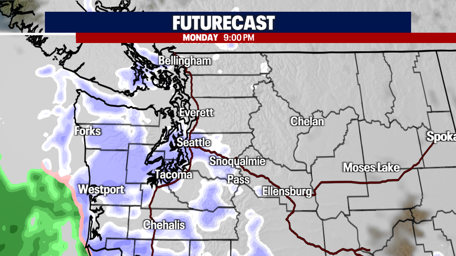 The Puget Sound area can expect about 1-2 inches of snow later Monday.