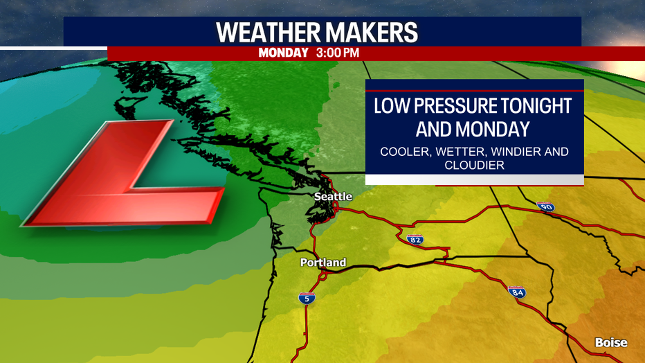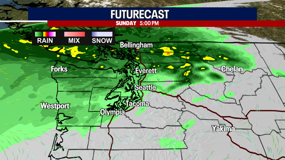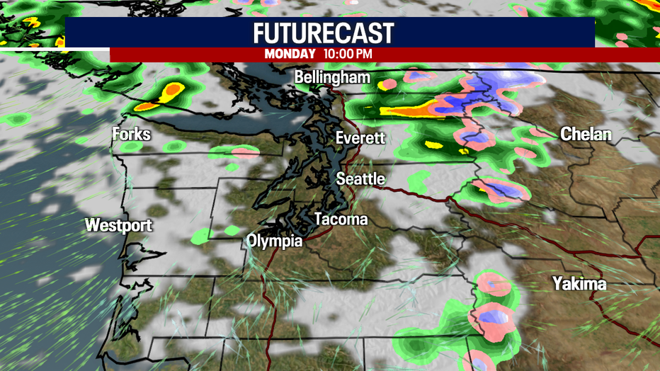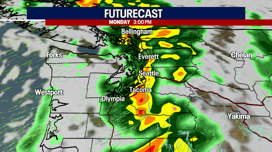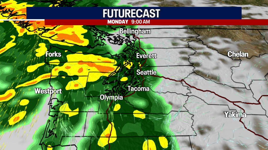 SEATTLE - We're only forecasting scattered showers today, but heavier rain and wind move in on Monday.