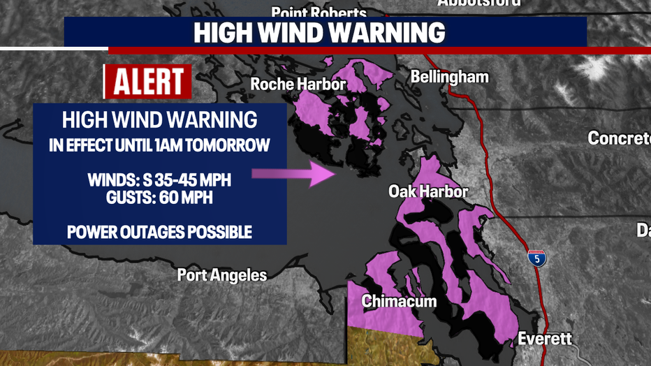 High Wind Warnings and Advisories remain in place too. These alerts coat the North Sound, Strait, and Coast.