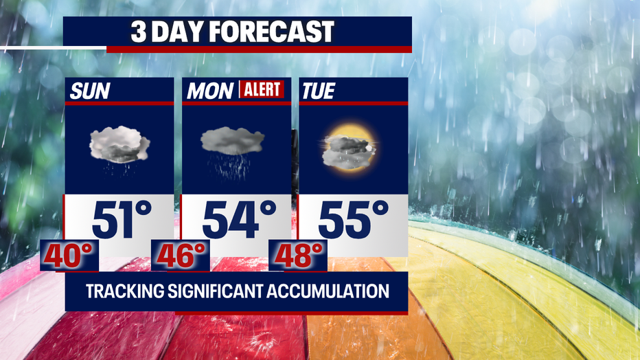 A Weather Alert Day is in place for Monday as the heavy rain increases, and the totals add up. We're looking at the possibility of exceeding 2" of accumulation.