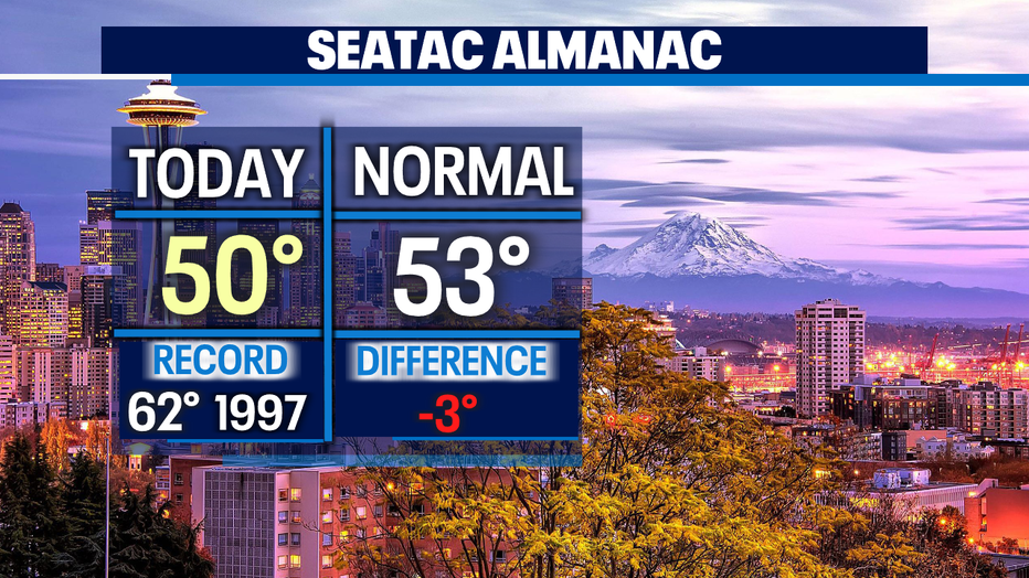 Saturday saw slightly cooler than average temperatures around Western WA. SeaTac hit 50, just three degrees shy of the norm.