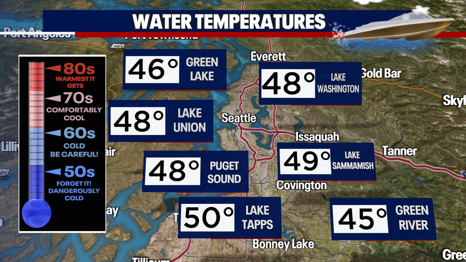 That's only the beginning. Temperatures will peak in upper 70s later this week! Now, I know a lot of us will be heading outdoors but use caution - especially by area lakes. Water temperatures remain in the 40s (too dangerous to swim in) and will continue to do so through the weekend.