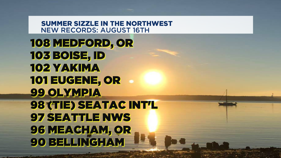 SEATTLE - Summer certainly sizzled on Sunday with record breaking temperatures all over the Pacific Northwest. We set records in a number of cities and towns all across Washington, Oregon, and Idaho.