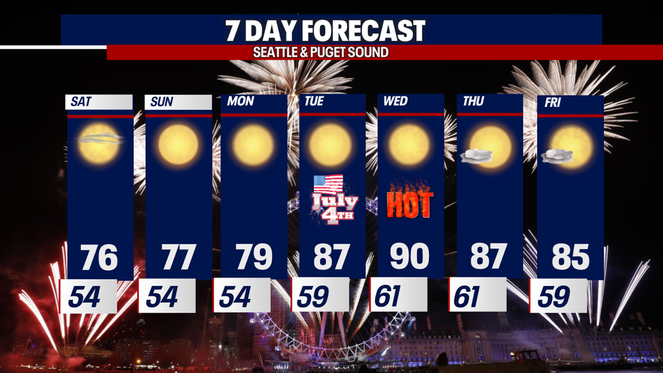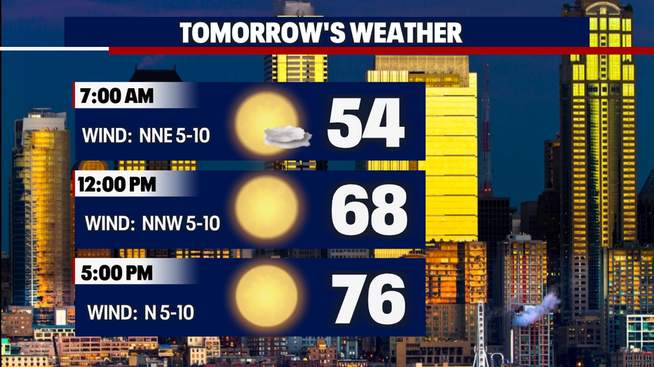 Seattle - Temperatures will remain comfortable as we kick off the weekend! Expect sunny skies along with a relaxing high of 76 degrees. Here is a look at your timeline: