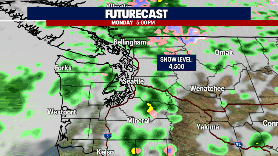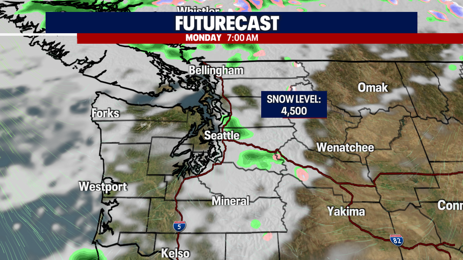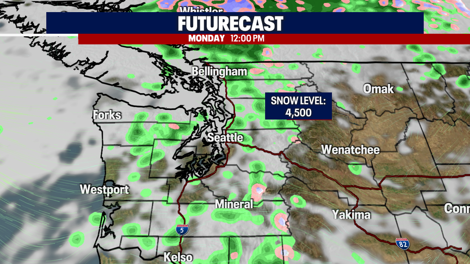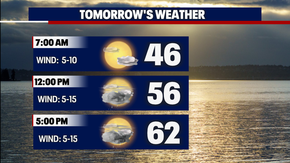 Expect foggy conditions across the passes tomorrow morning. We'll continue with a low snow level once again too. Here is a breakdown of your rain chances tomorrow: