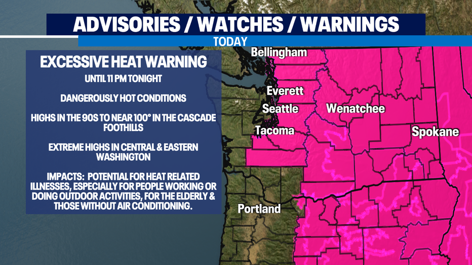 SEATTLE - After yesterday's all-time record-breaking heat, we're cooling down today. We'll top out around 90 for Seattle, but at least that's much cooler than yesterday's 108 at Sea-Tac Airport.