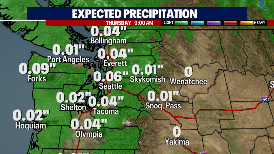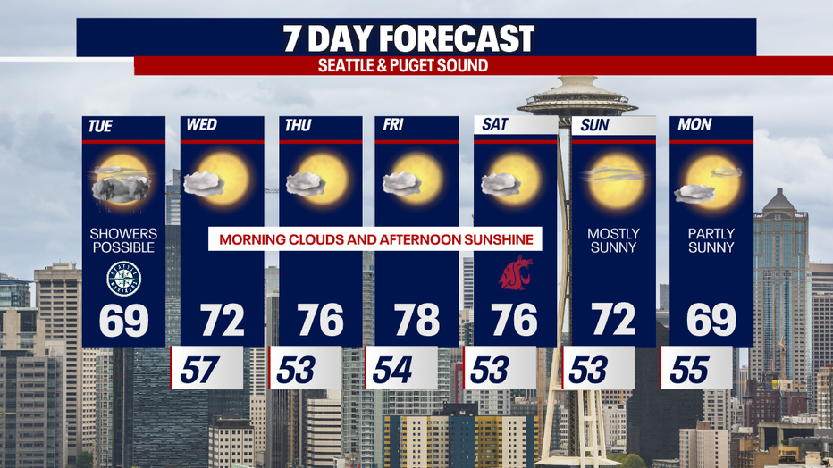 SEATTLE - A weak system will bring rain showers and cooler temperatures to Western Washington Tuesday.