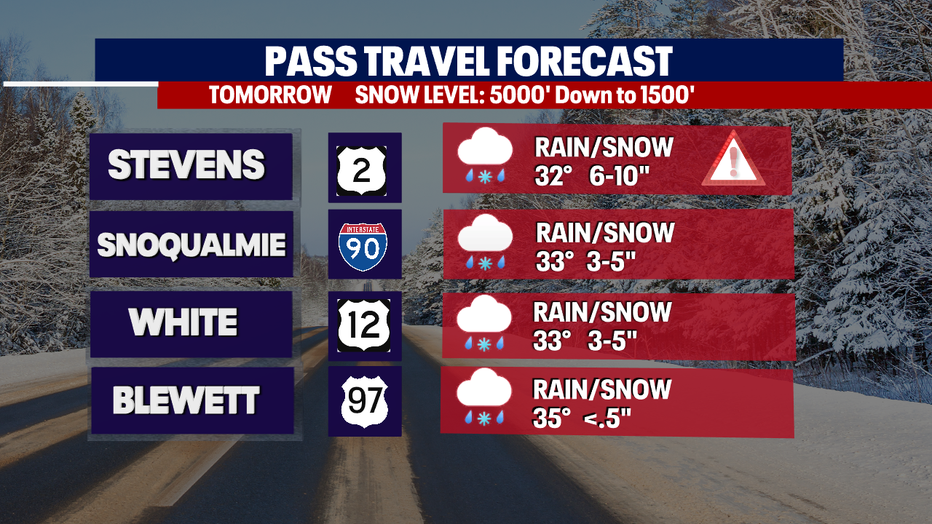 Here is a look at the pass travel forecast if you are heading over the Cascades Friday.