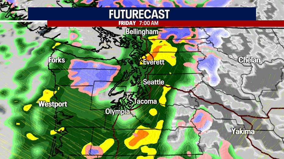 Friday morning showers will be widespread and the snow levels will start around 4500'.