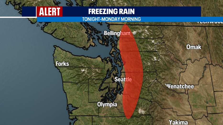 Freezing rain is possible in the foothills of the Cascades tonight through Monday morning. This is very dangerous!!! Icy conditions are possible on the roads!