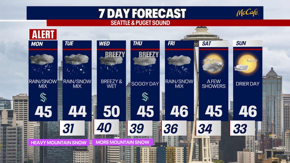 Seattle weather: Kicking off the workweek with heavy mountain snow