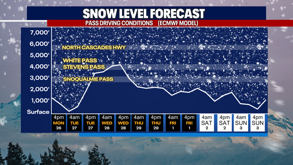 It's not all bad news for Snoqualmie Pass. Snow levels will dip again Wednesday night through the end of the week.
