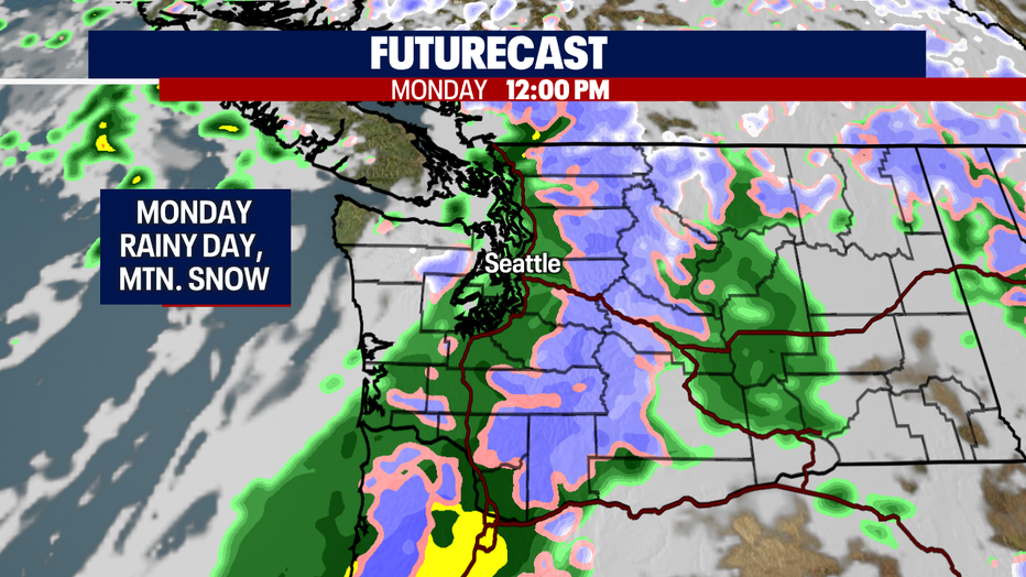 Rain hangs with us through all of Monday with snow continuing to pile up over the mountains.