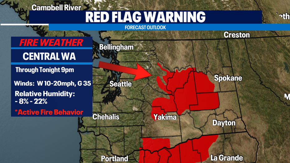 Air quality will steadily improve through Tuesday with winds out of the west southwest. A passing upper level low also helping keep the atmosphere clear of poor AQI levels through mid-week. As the low passes there's a chance for a few showers for the North Sound early Monday morning.