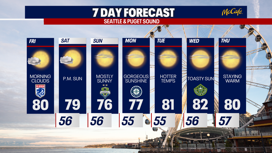SEATTLE - Western Washington will end the week strong, with morning clouds, afternoon sunshine and highs around 80 degrees.