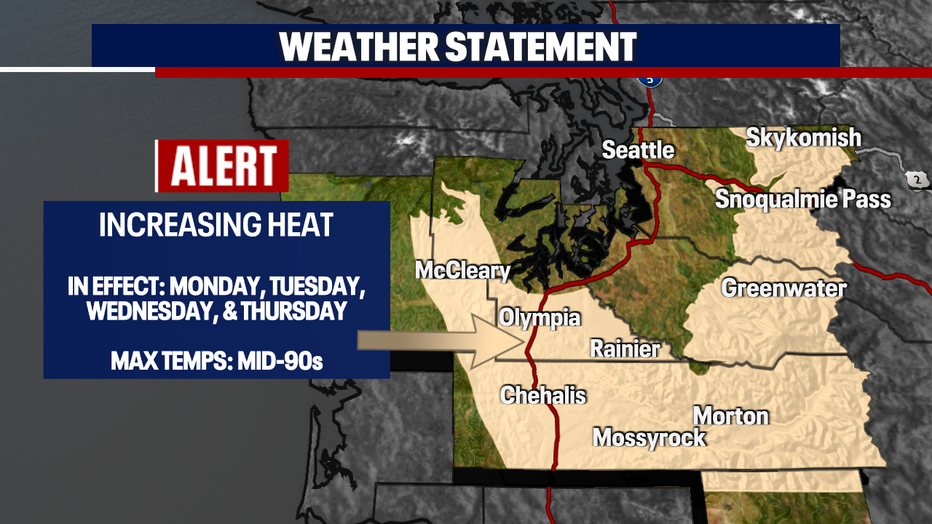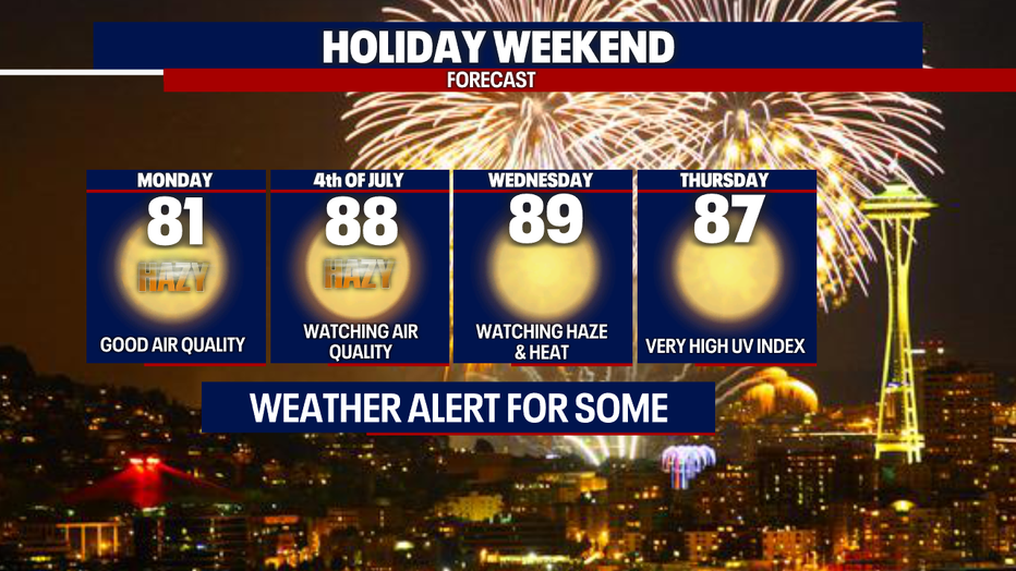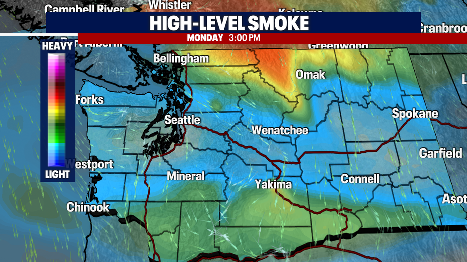 Seattle - Get ready for another warm day! Temperatures will rise into the 80s for those across parts of the Puget Sound. We'll continue with dry conditions, but smoky skies return to Washington from the wildfires in Canada. Here is a look at Monday's forecast: