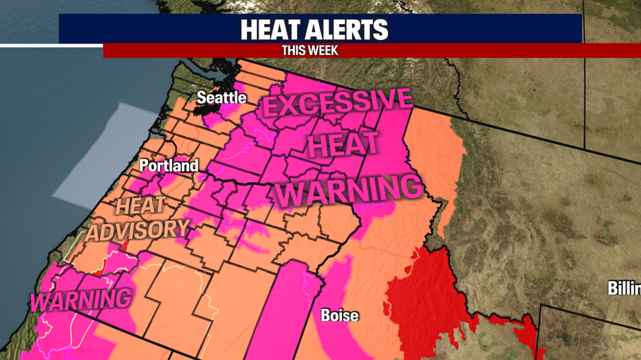 Most of the NW stays under either extreme heat warnings or heat advisories through Sunday at 9pm. Make sure to stay hydrated, limit time outdoors, and wear sunblock as the skin can burn in minutes with our UV Index very high.