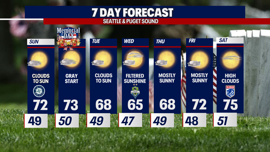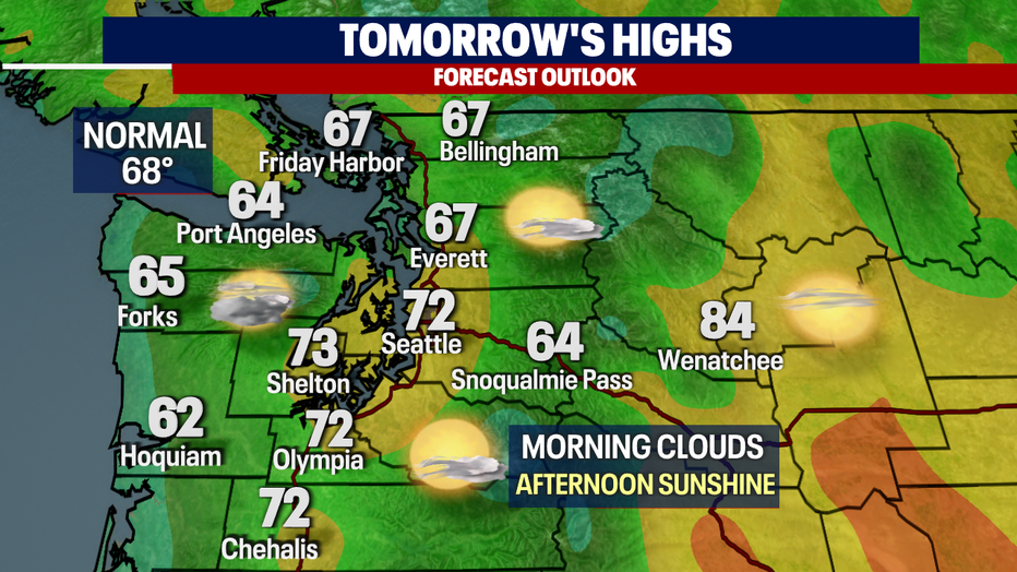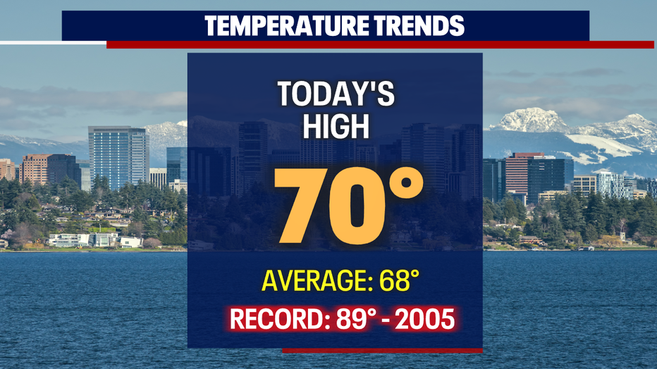 Seattle - Saturday marks the fourth day in a row we were above average for the Seattle area. SeaTac hit 70 at the airport with slightly warmer temps to the south.