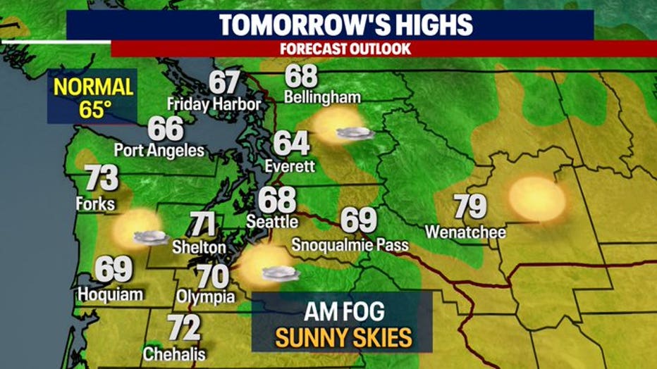 SEATTLE - A beautiful day for the Pacific Northwest with sunshine this afternoon and highs in the upper 60s.