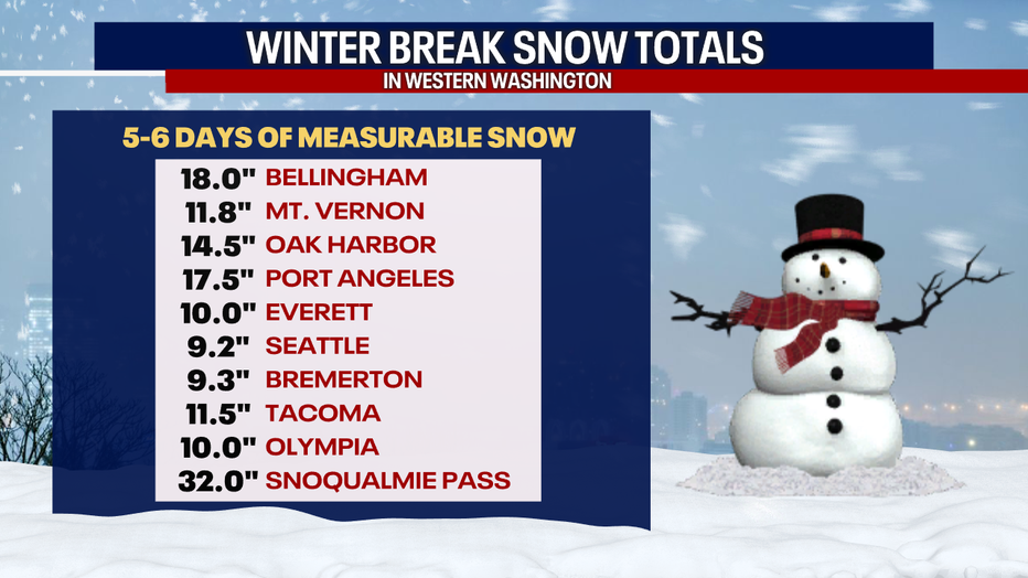 - This was only the second time in Seattle’s (SeaTac) recorded history with five consecutive days of measurable snowfall in December.