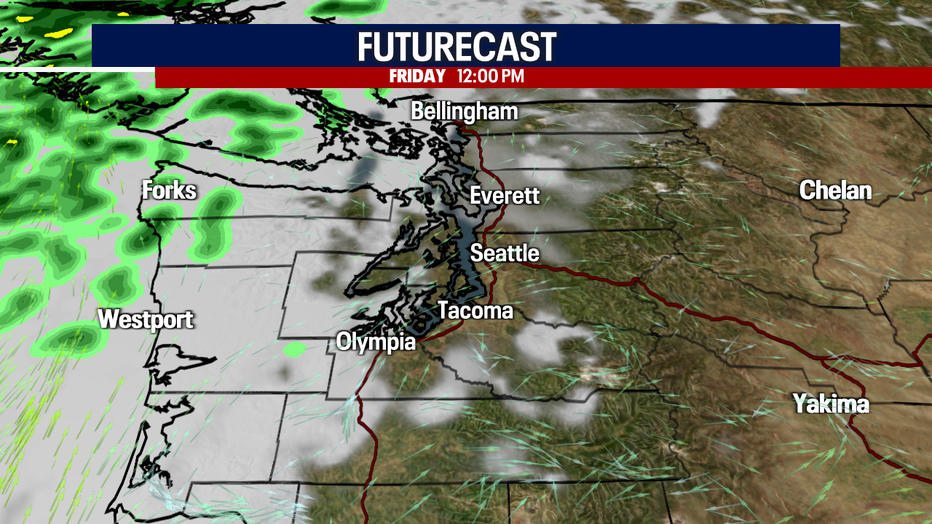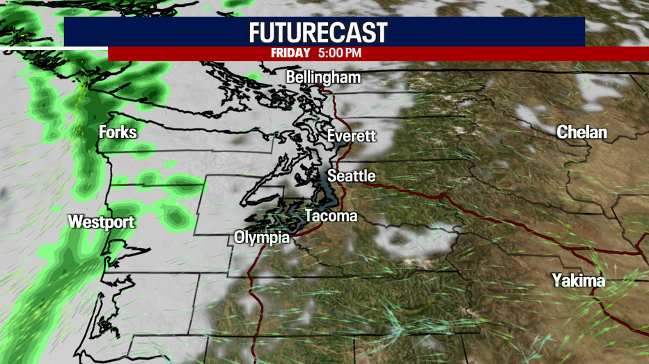 Some rain is possible along the coast tomorrow. A few sprinkles could pop up Saturday elsewhere in Western Washington; however, many will be shower-free all week.