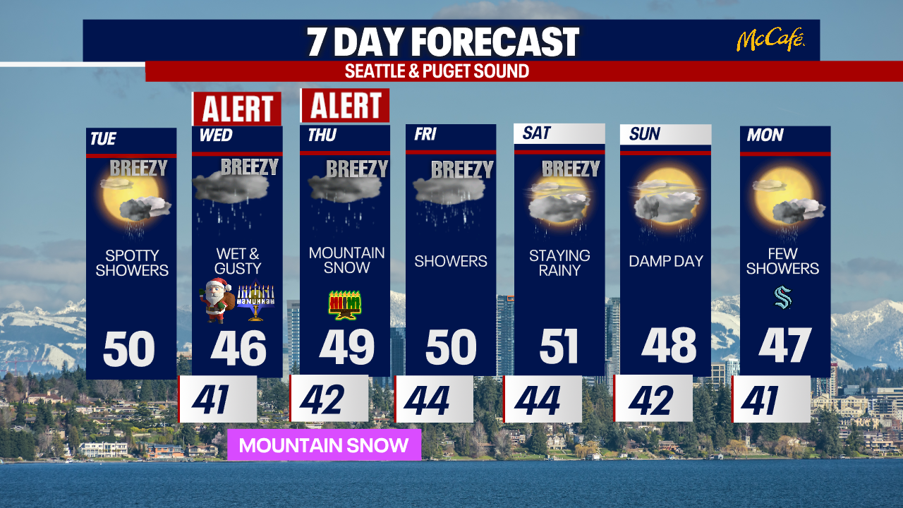 Rainy and gusty weather is predicted in Seattle on Christmas! (FOX 13 Seattle)