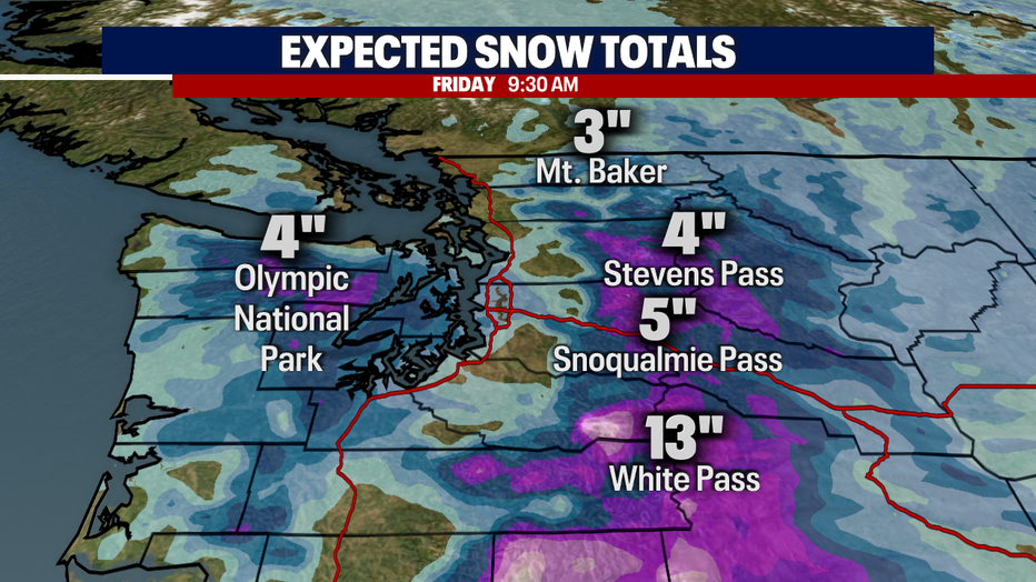 Over Stevens and Snoqualmie Passes, minor snow will fall by Thursday morning, but heavier totals are expected over the Southern Cascades, including White Pass.