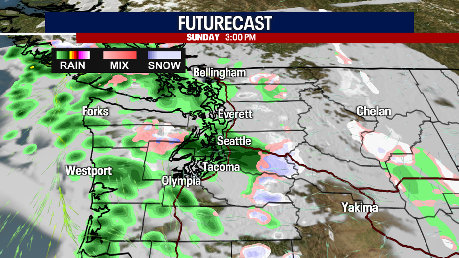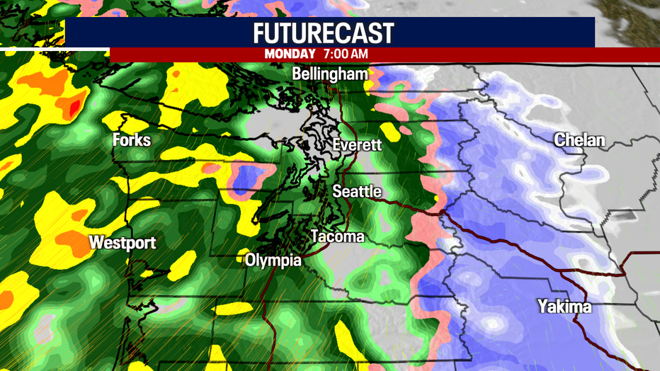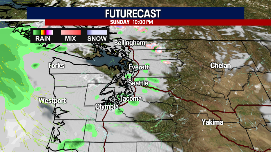 Speaking of flooding, we'll have to watch for rising river levels over the Olympic Peninsula. The Skokomish River in Mason County could near flood stage at times this week.