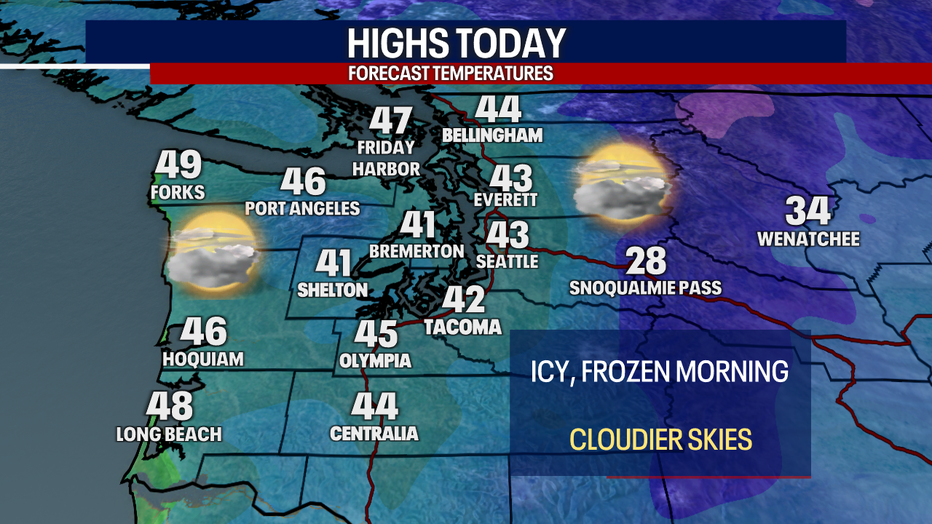 Highs today will only reach the low to mid-40s for most. If you're stepping outside to walk the dog, do some last-minute errands, go to a Christmas Eve service, or drive to see family or friends, bundle up!