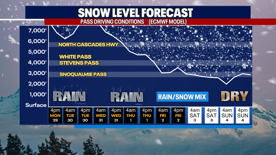 Overall, the next 48 hours does not look terribly wet. The heaviest rain will over the Olympic Peninsula. Though anything that falls over the mountains will be rain, not snow, over the passes until Thursday.