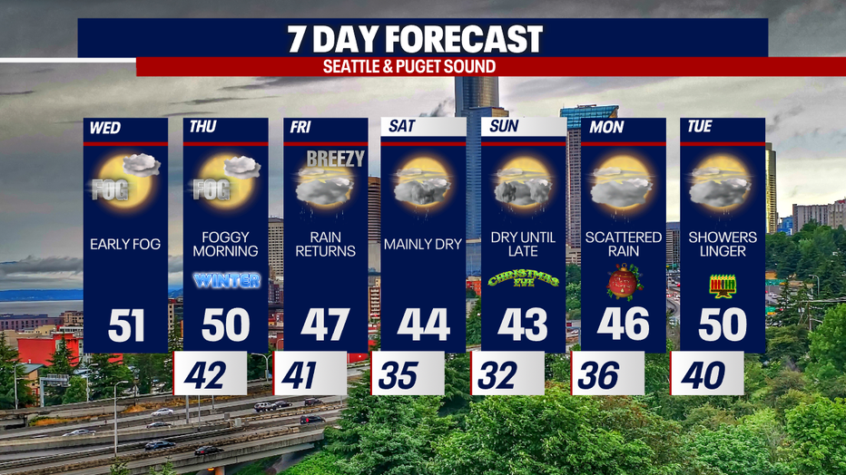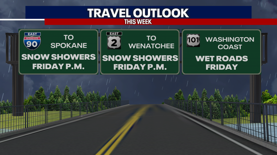 Seattle - This is going to be a great holiday travel week around Western Washington with the exception of Friday, which will bring lowland rain and several inches of mountain snow.