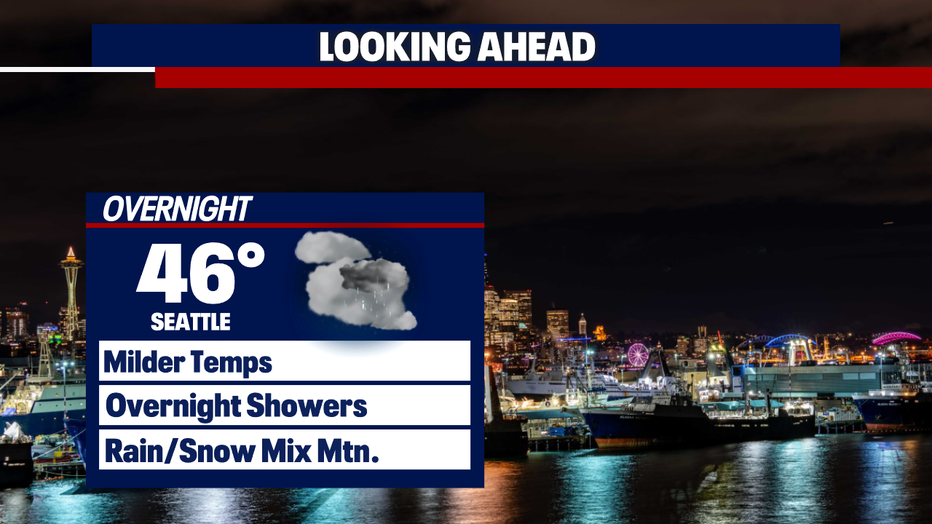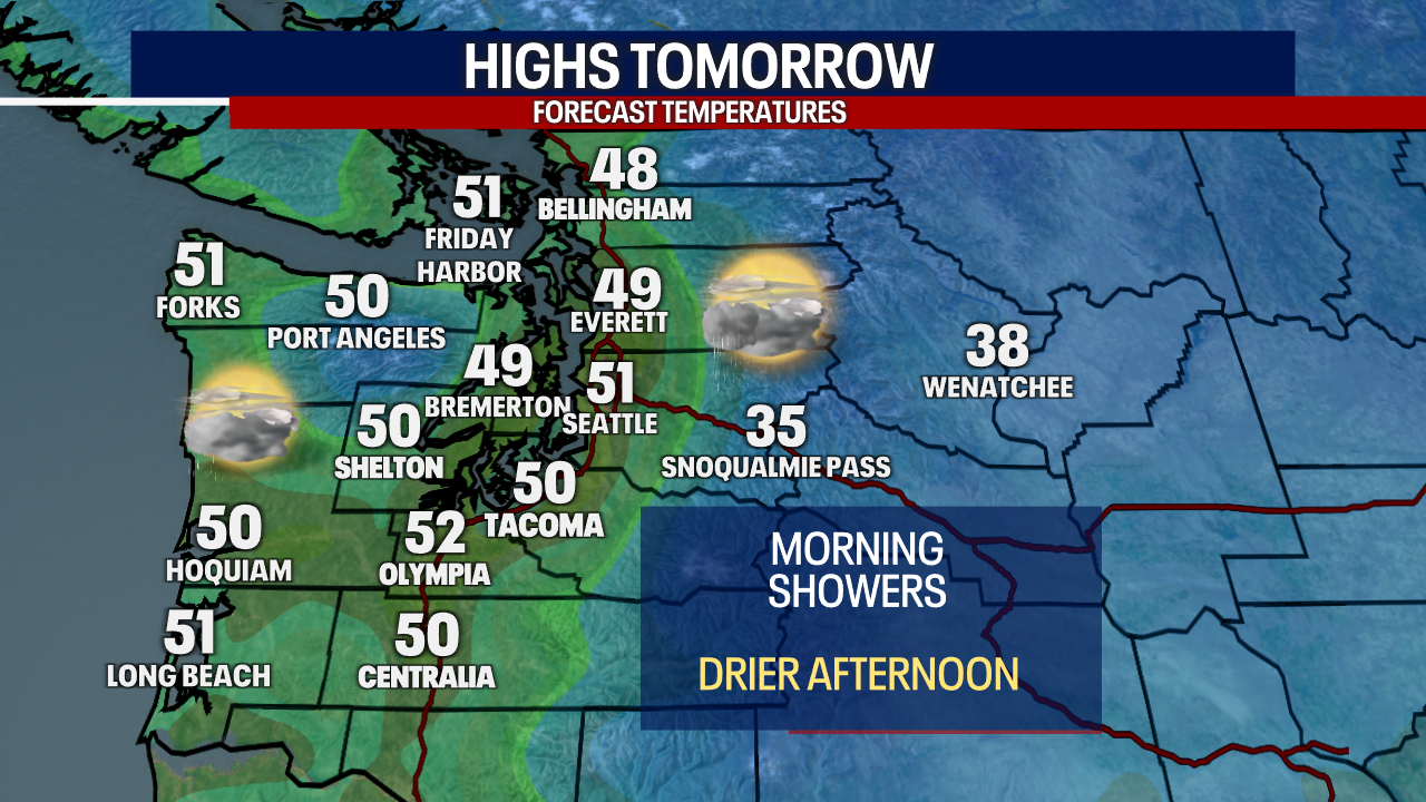 SEATTLE - Temperatures today reached the low 50s with plenty of widespread rain showers.