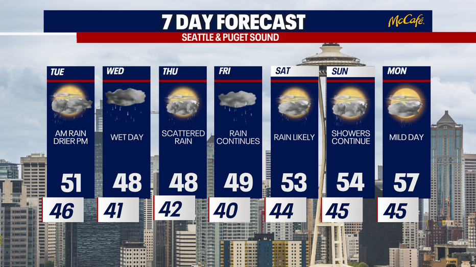 Seattle weather: Scattered showers to start Tuesday, drier afternoon