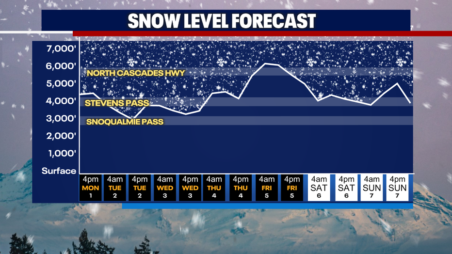 Snow levels could drop again over the weekend for a round of pass-level snow.