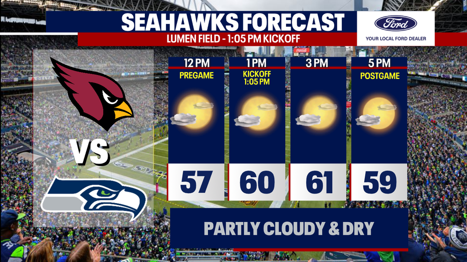 This weekend looks fantastic around the greater Puget Sound area with partly to mostly sunny skies and high temperatures warming to the low 60s on Sunday. The Seattle Seahawks will take on the Arizona Cardinals on Sunday at Lumen Field, and it will be a perfect fall day for football in Seattle.