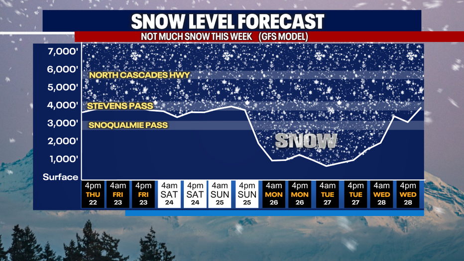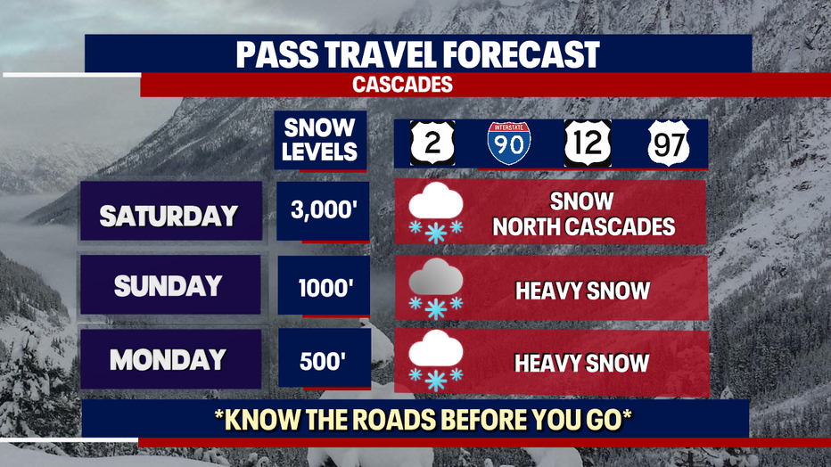 If you plan on traveling through the passes, be sure to keep an eye on the forecast and also the roads! Travel through the mountains will become more difficult by Sunday and Monday when some of the heaviest snow is forecast to fall.
