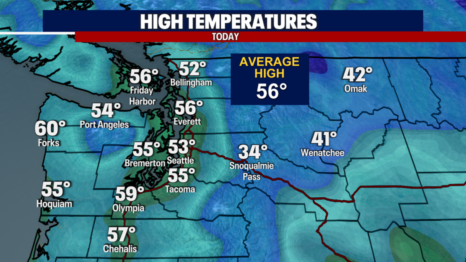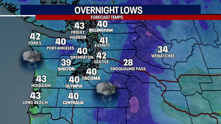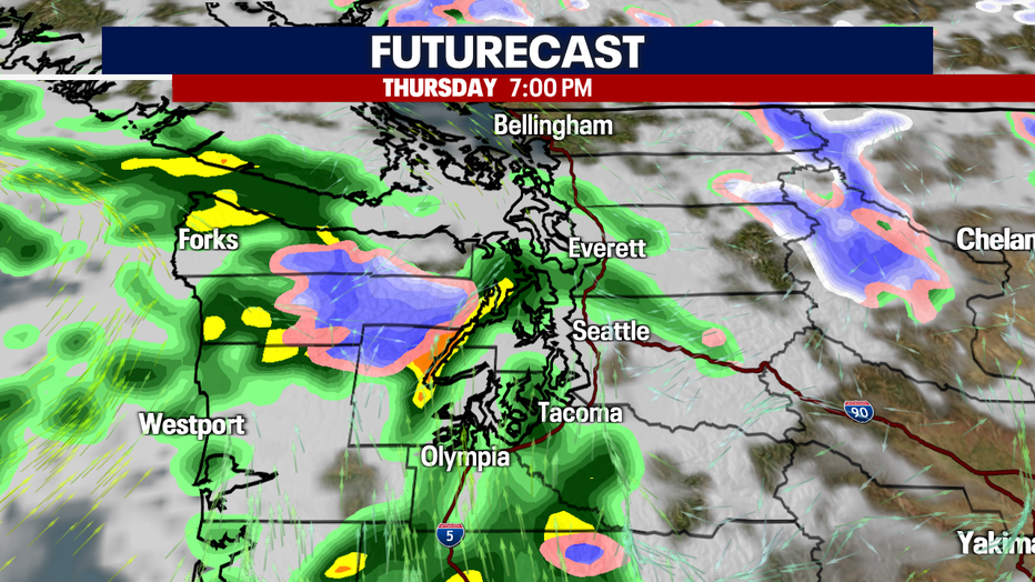 The best chance of storms will be along the coast and into the Cascades. These weak storms could bring heavy rain, small hail and gusty winds.