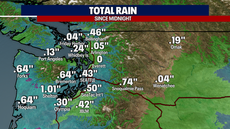 Some of the heaviest rain was associated with t-storms, bringing over an inch of rain for Shelton.