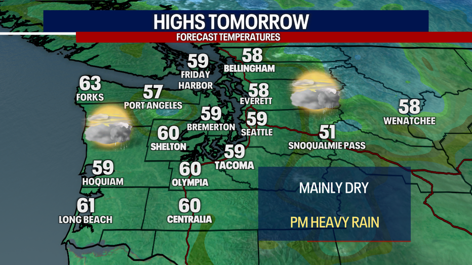 Winds and skies will calm down and take a break on Friday, with mostly dry skies. Highs will remain mild in the upper 50s and low 60s.