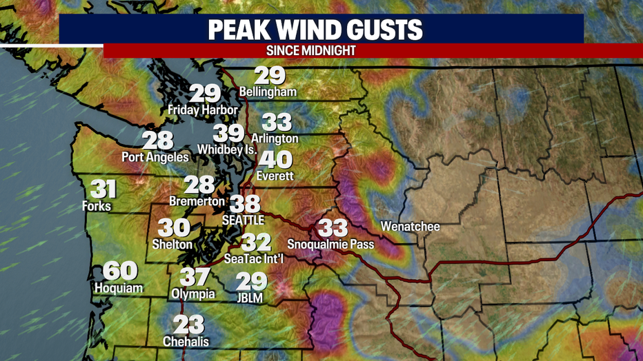 Some of the strongest wind gusts around the region were around 40-60mph, but most spots saw gusts in the 30-40mph range.