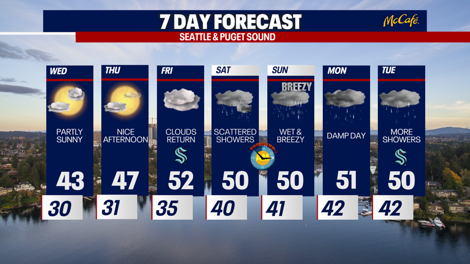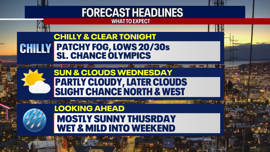 Seattle Weather: Chilly start Wednesday, mostly dry skies