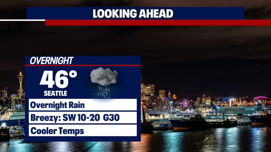 A cold front will move through overnight, increasing the rain and winds. Winds could gust up to 30 mph overnight.
