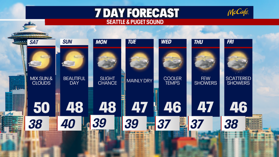Seattle weather: Cooler and drier for the weekend