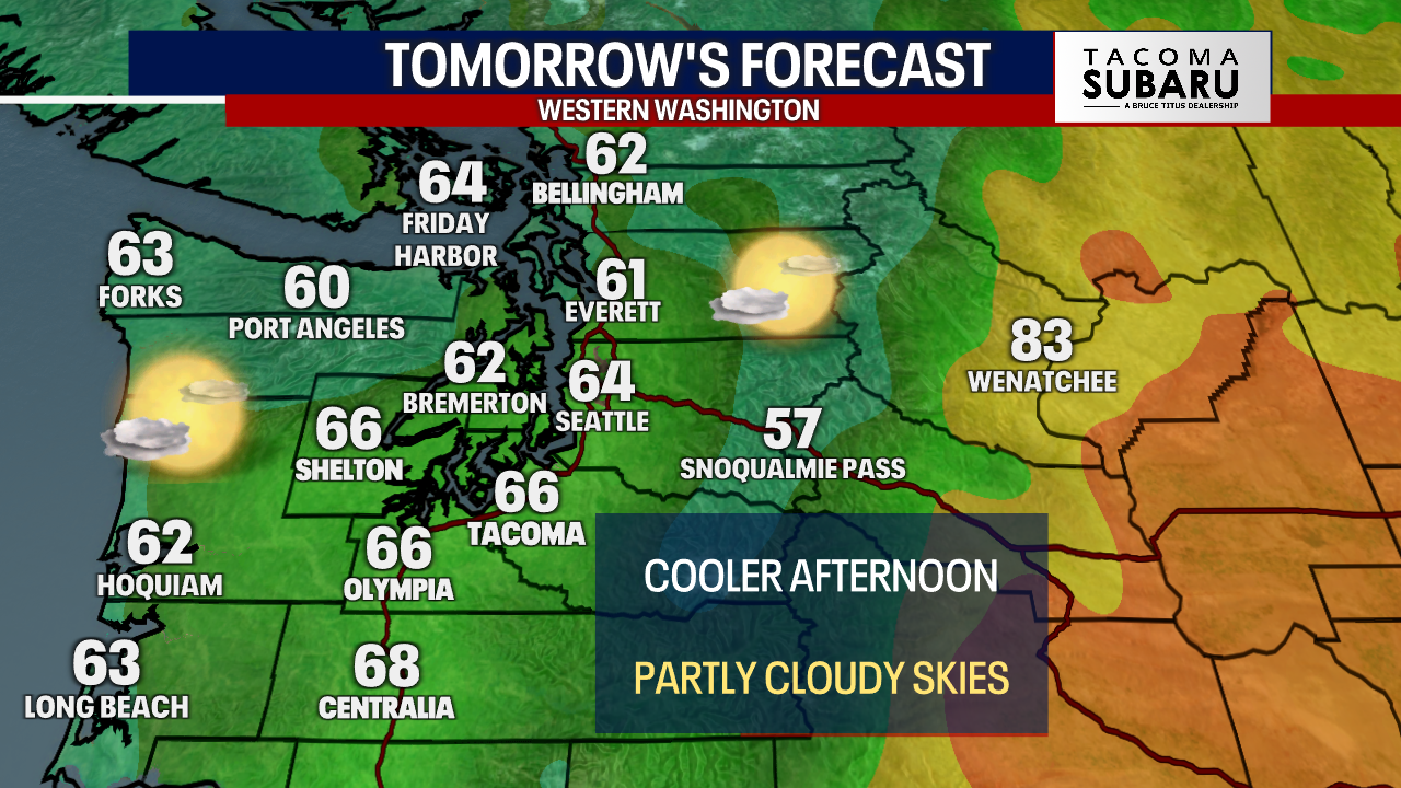 Seattle weather: Cooler Thursday with more clouds, highs in the 60s