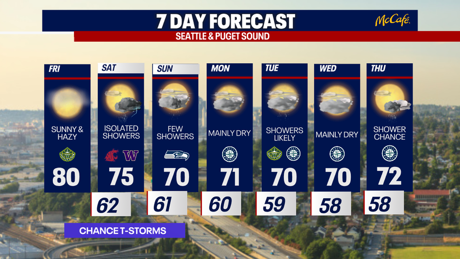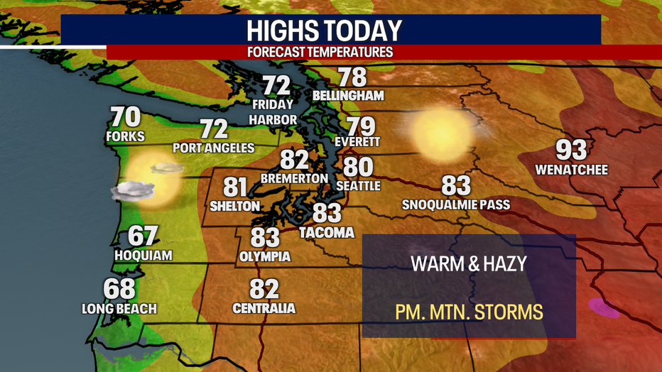 SEATTLE - Morning clouds will be followed by smoky sunshine Friday afternoon in Seattle, with warm temperatures for one more day.
