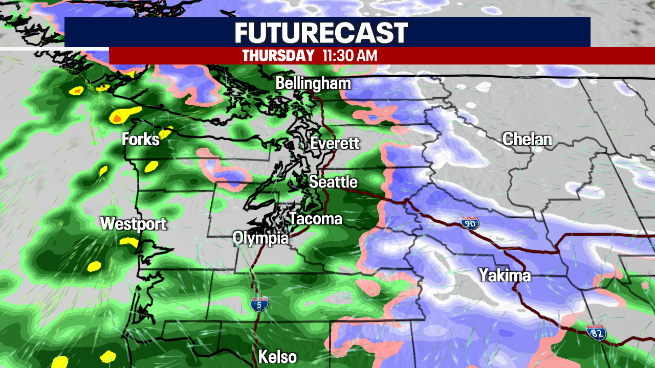 Another cool night ahead as temperatures are forecast to dip into the 30s by Thursday morning. If the temperatures get cool enough overnight and the moisture increases, there is a chance that folks from around Everett to Fall City and northward could see a brief rain/snow mix early in the morning. No accumulations are expected.
