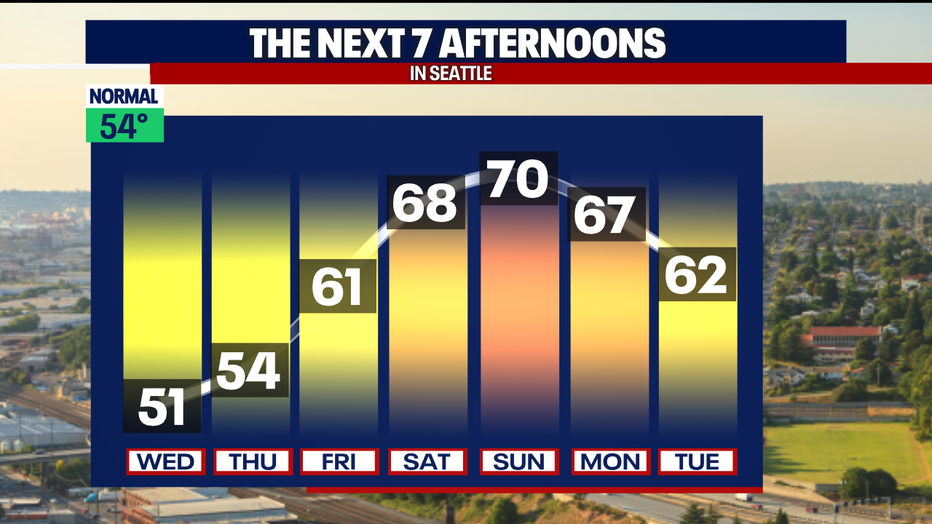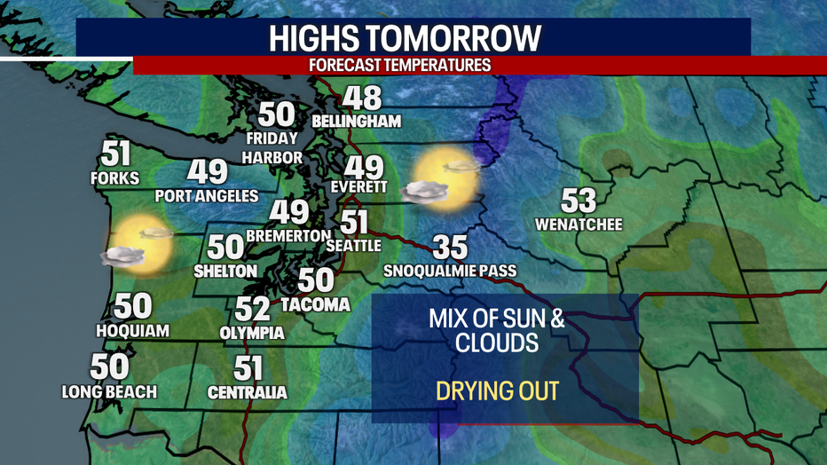 Highs will still be below average, which is 54F in Seattle for the day. We will get into the low 50s.