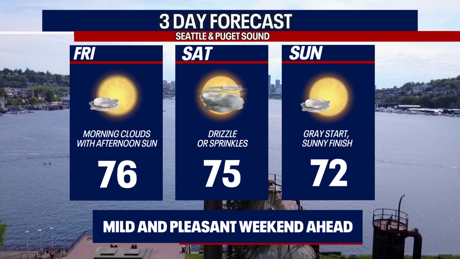 SEATTLE - Get ready for a gorgeous weekend of mild, summery weather around Western Washington. You can expect highs in the 70s and a mix of sunshine and clouds.