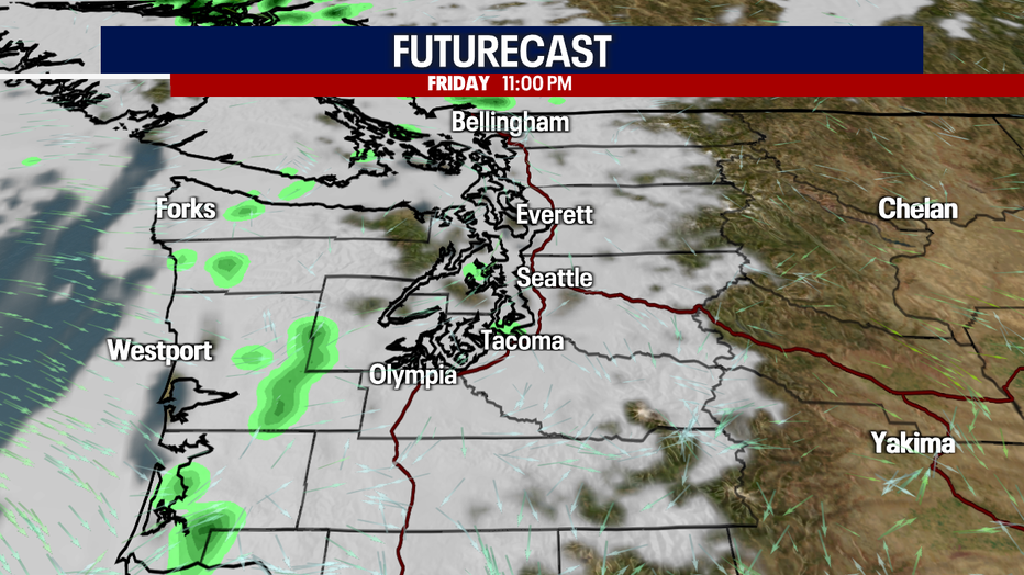 For communities along the coast, overcast skies and rain are in the forecast today. Some of these showers could push into the North Sound later tonight.