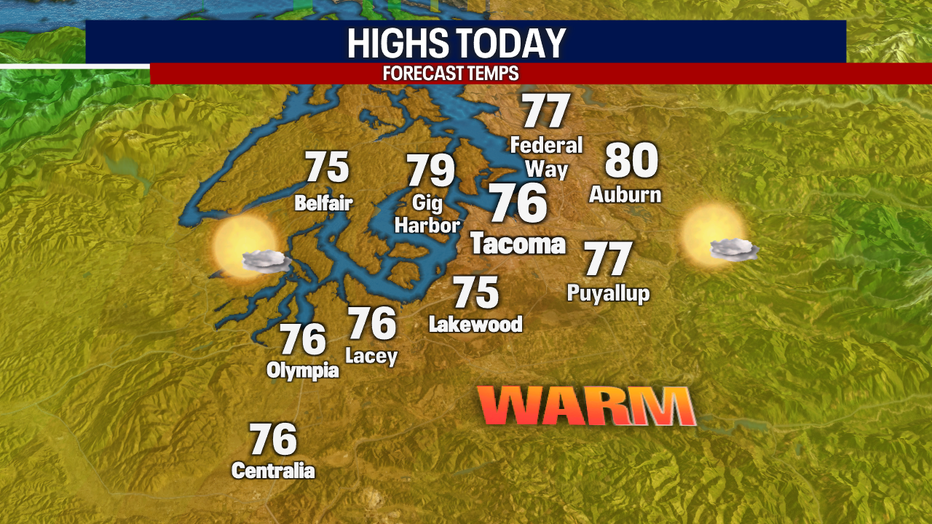 Building high pressure will give temperatures a boost around Western Washington; highs will soar to the 80s Tuesday and Wednesday. On an almost daily basis, morning clouds will be followed by afternoon sunshine. Enjoy the glorious weather!